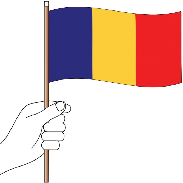 This Chad Handwaver is a hand flag printed on a single side of knitted polyester 300mm x 150mm in size. The design bleeds through the fabric to create a mirror image on the other side.