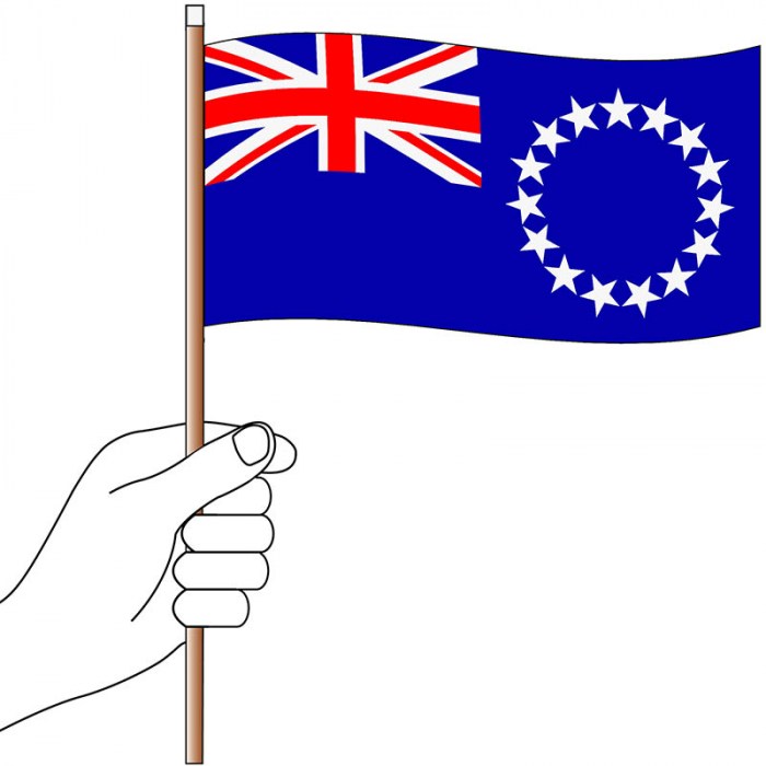 This Cook Islands Handwaver is a hand flag printed on a single side of knitted polyester 300mm x 150mm in size. The design bleeds through the fabric to create a mirror image on the other side.