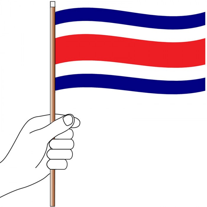 This Costa Rica Handwaver is a hand flag printed on a single side of knitted polyester 300mm x 150mm in size. The design bleeds through the fabric to create a mirror image on the other side.
