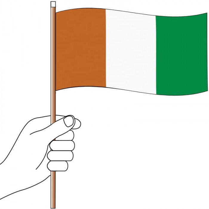 This Ivory Coast Handwaver is a hand flag printed on a single side of knitted polyester 300mm x 150mm in size. The design bleeds through the fabric to create a mirror image on the other side.
