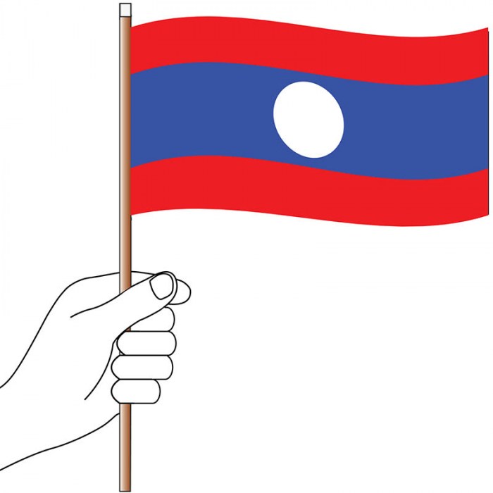 This Laos Handwaver is a hand flag printed on a single side of knitted polyester 300mm x 150mm in size. The design bleeds through the fabric to create a mirror image on the other side.