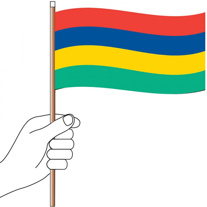 This Mauritius Handwaver is a hand flag printed on a single side of knitted polyester 300mm x 150mm in size. The design bleeds through the fabric to create a mirror image on the other side.