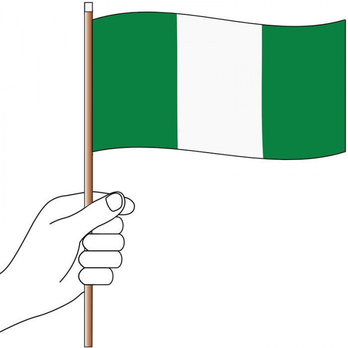 This Nigeria Handwaver is a hand flag printed on a single side of knitted polyester 300mm x 150mm in size. The design bleeds through the fabric to create a mirror image on the other side.