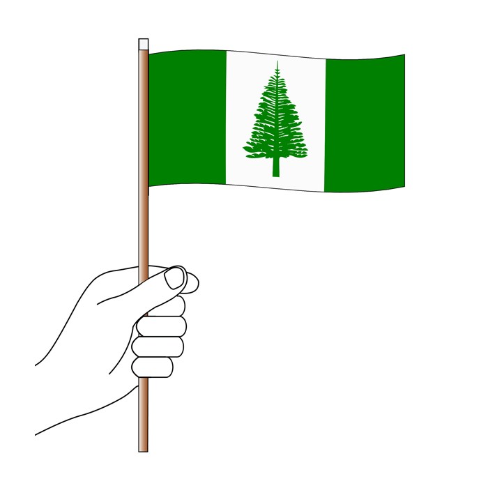 This Norfolk Island Handwaver is a hand flag printed on a single side of knitted polyester 300mm x 150mm in size. The design bleeds through the fabric to create a mirror image on the other side.