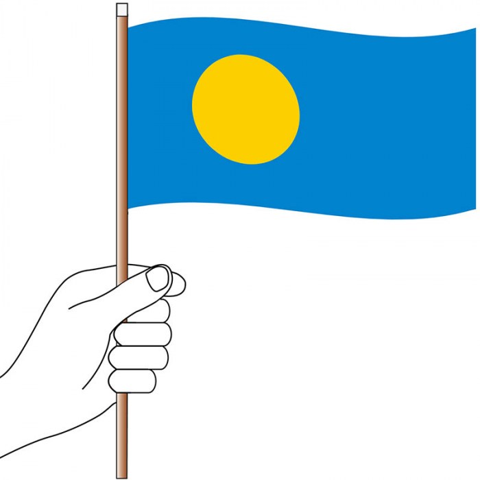 This Palau Handwaver is a hand flag printed on a single side of knitted polyester 300mm x 150mm in size. The design bleeds through the fabric to create a mirror image on the other side.