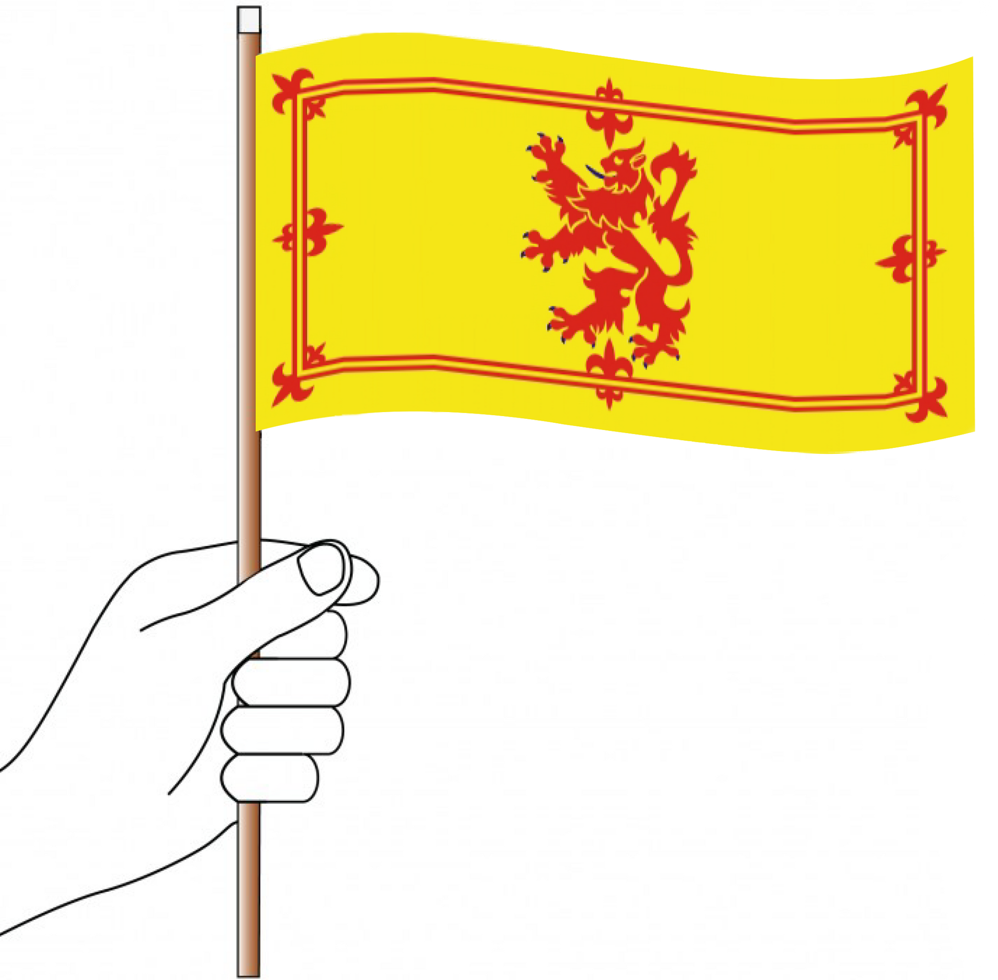 This Scottish Rampant Lion Handwaver is a hand flag printed on a single side of knitted polyester 300mm x 150mm in size. The design bleeds through the fabric to create a mirror image on the other side.