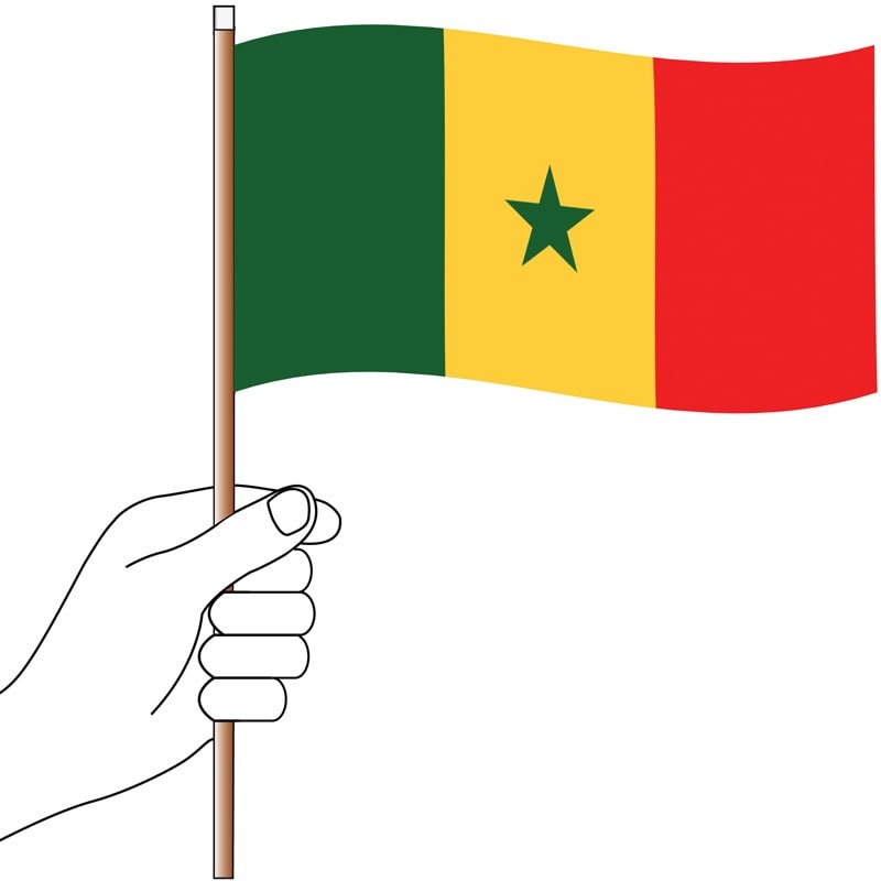 This Senegal Handwaver is a hand flag printed on a single side of knitted polyester 300mm x 150mm in size. The design bleeds through the fabric to create a mirror image on the other side.