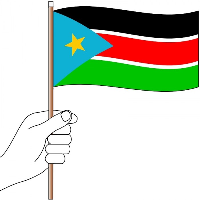 This South Sudan Handwaver is a hand flag printed on a single side of knitted polyester 300mm x 150mm in size. The design bleeds through the fabric to create a mirror image on the other side.