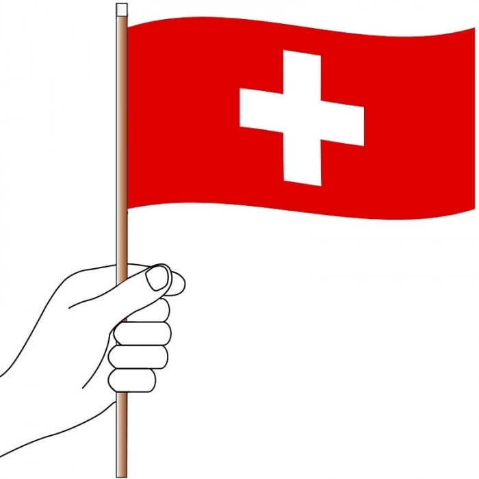 This Switzerland Handwaver is a hand flag printed on a single side of knitted polyester 300mm x 150mm in size. The design bleeds through the fabric to create a mirror image on the other side.