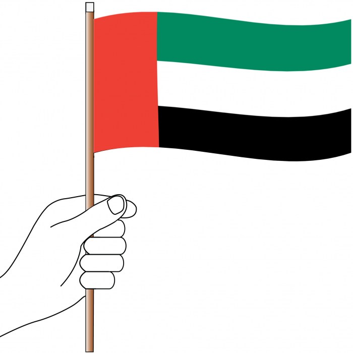 This United Arab Emirates Handwaver is a hand flag printed on a single side of knitted polyester 300mm x 150mm in size. The design bleeds through the fabric to create a mirror image on the other side.